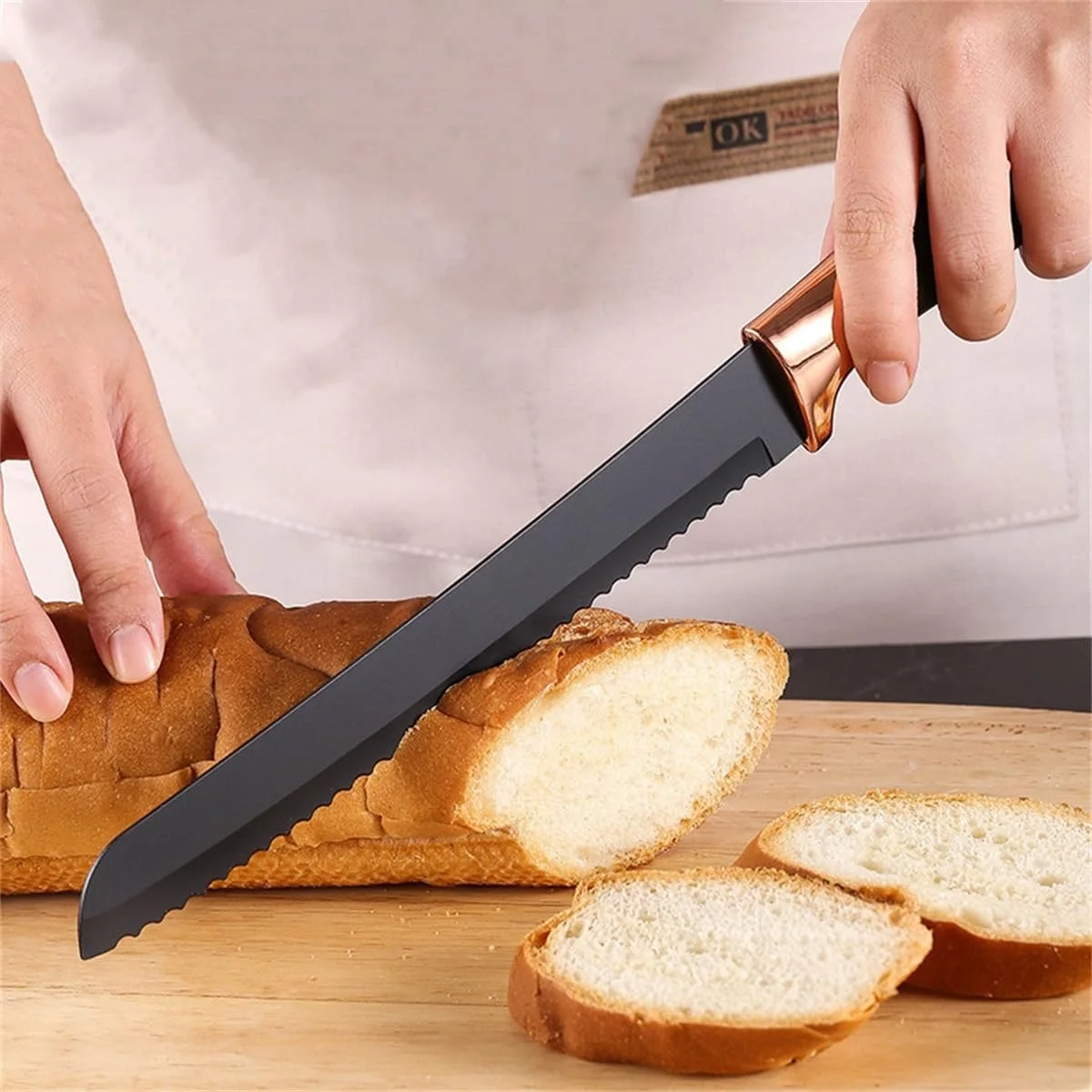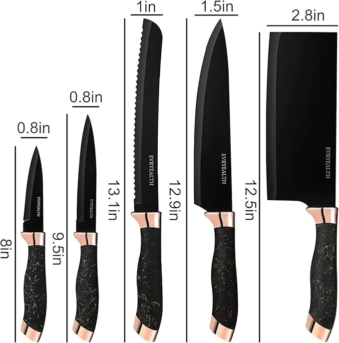 - حدة طويلة الأمد: تبقى شفرات السكاكين حادة لفترة طويلة، مما يجعل تقطيع اللحوم والخضروات والفواكه أمرًا سهلاً وسريعًا.
